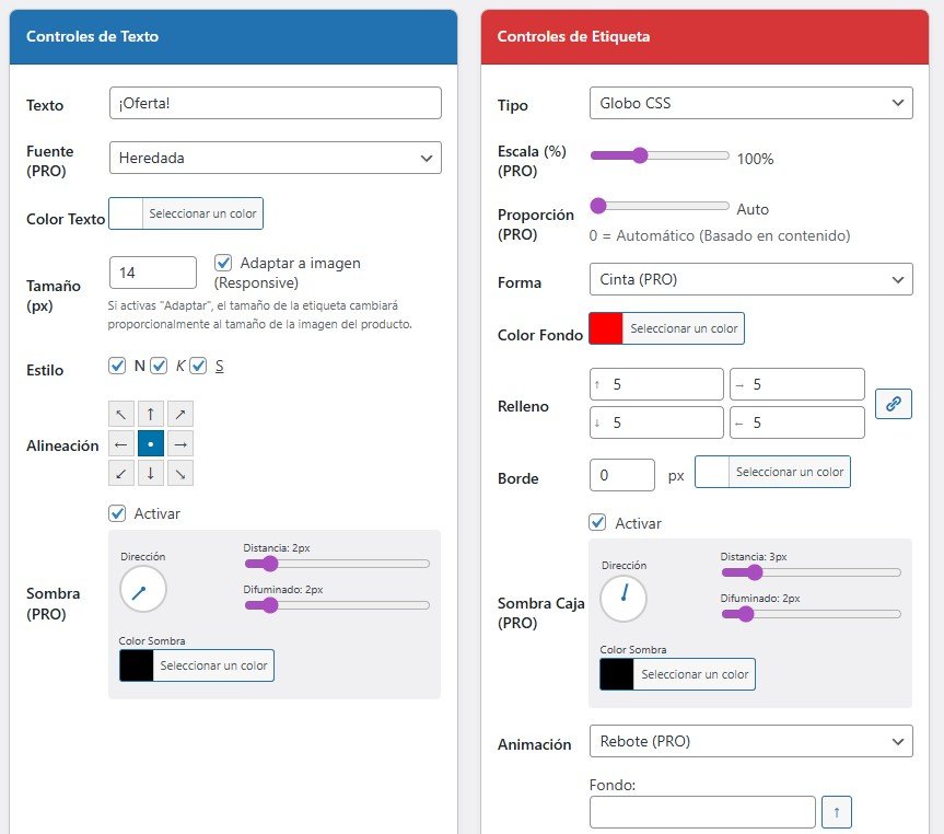 Cambia el texto de la etiqueta (ej. “¡Rebajado!”, “Oferta”, “-30%”, “Black Friday”).